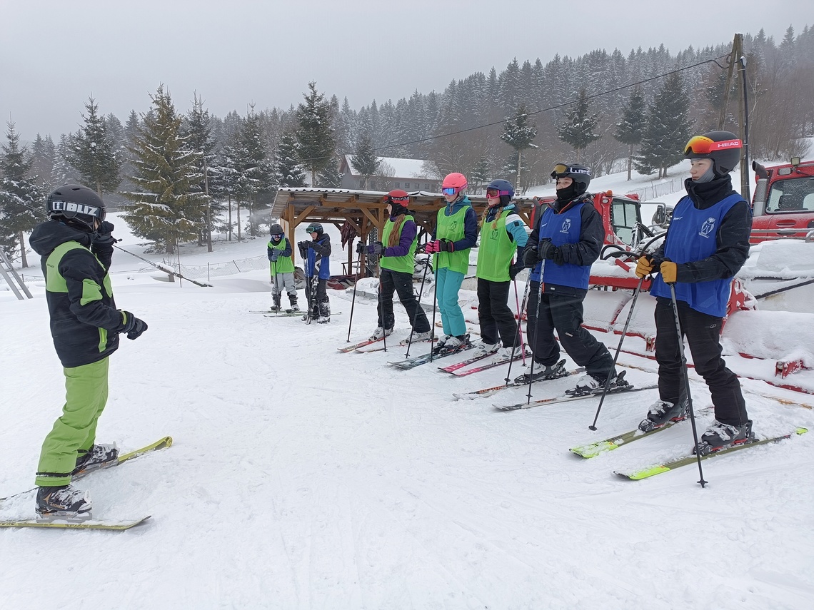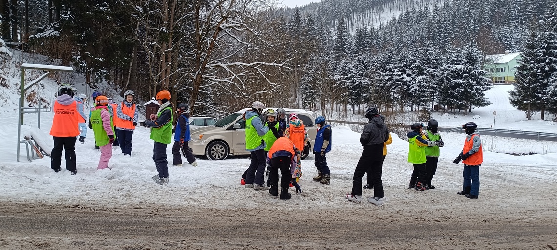Tak už jsme se dočkali – jsme na lyžáku na Sachovce. Hektický odjezd + hektické ubytování, ale konečně jsme na svahu a začínáme s výcvikem. Zatím na „malé sjezdovce“, ale ve skvělých zimních podmínkách. Seznamujeme se s průběhem dne, s místní kuchyní a také více mezi sebou. Zítra máme slíbený už vlek a někteří se snad podívají na „hlavní svah“. Všechny zdravíme.