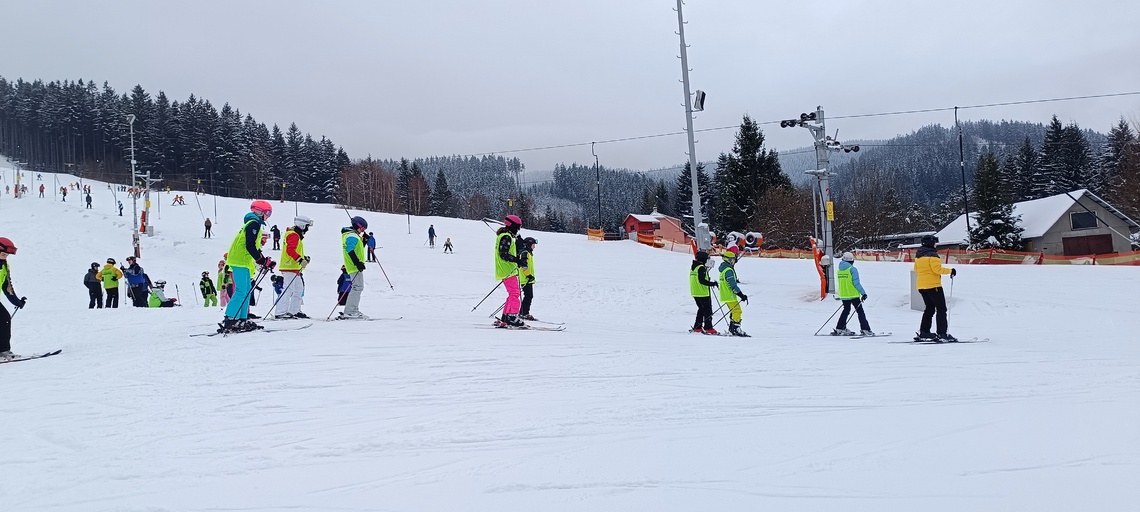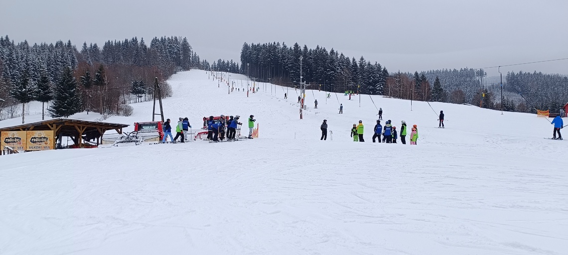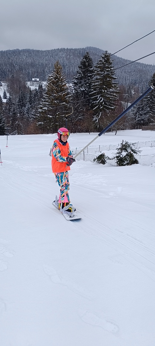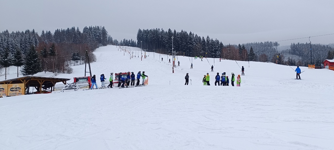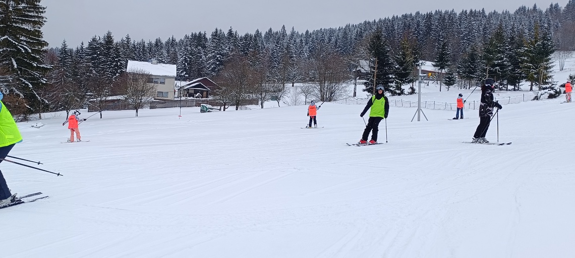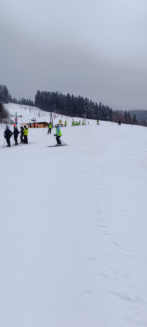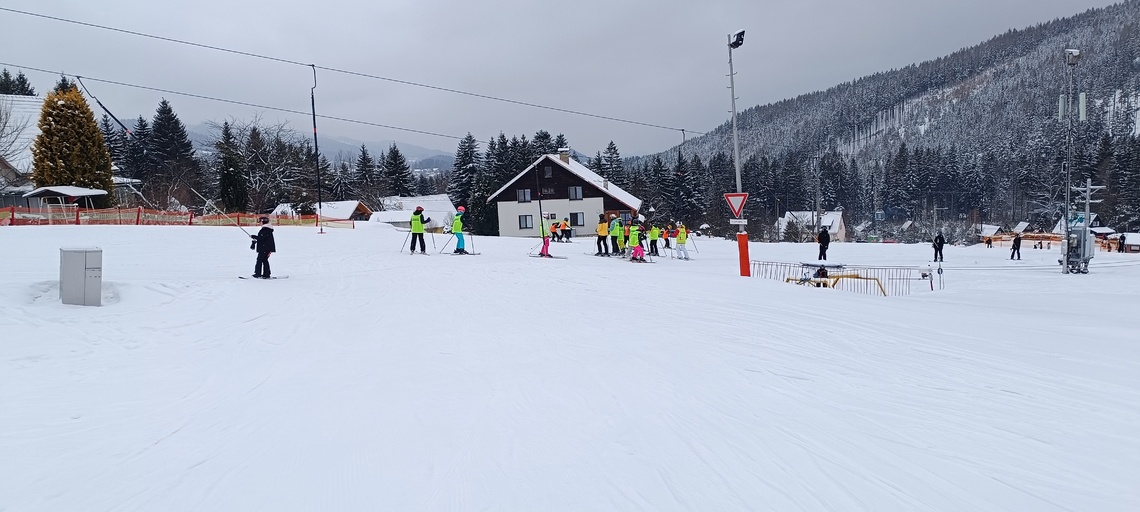 Úterní Sachovka je ve znamení pravého zimního počasí – teplota kolem nuly a odpoledne sněžení. Vstáváme na vydatnou snídani a těšíme se na vleky a další lyžování. Každé družstvo má barevné rozlišení a pod vedením instruktorů se zlepšujeme. Večerním program je ve znamení soutěží mezi družstvy a následné „Stardance“. Večerka ve 22.00 je tak akorát, protože únava se opravdu zvyšuje. Tak zítra ahoj.