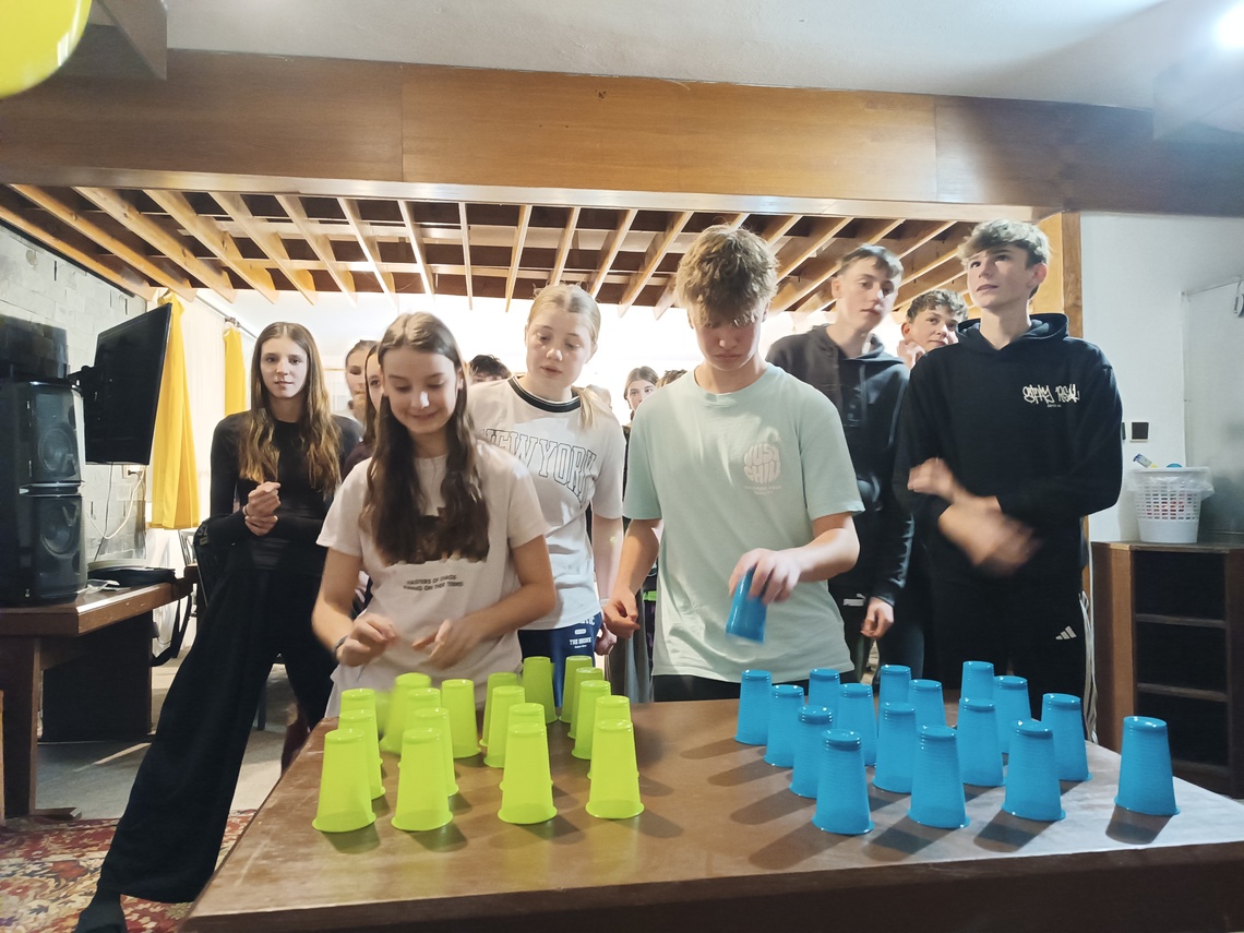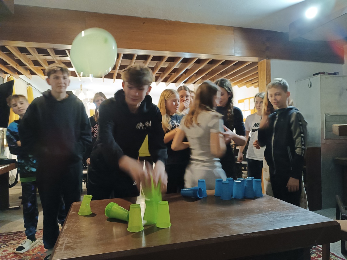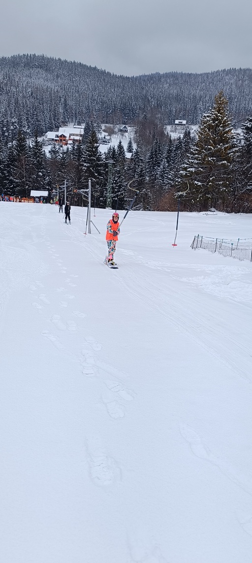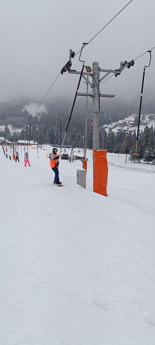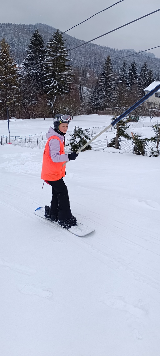 Úterní Sachovka je ve znamení pravého zimního počasí – teplota kolem nuly a odpoledne sněžení. Vstáváme na vydatnou snídani a těšíme se na vleky a další lyžování. Každé družstvo má barevné rozlišení a pod vedením instruktorů se zlepšujeme. Večerním program je ve znamení soutěží mezi družstvy a následné „Stardance“. Večerka ve 22.00 je tak akorát, protože únava se opravdu zvyšuje. Tak zítra ahoj.