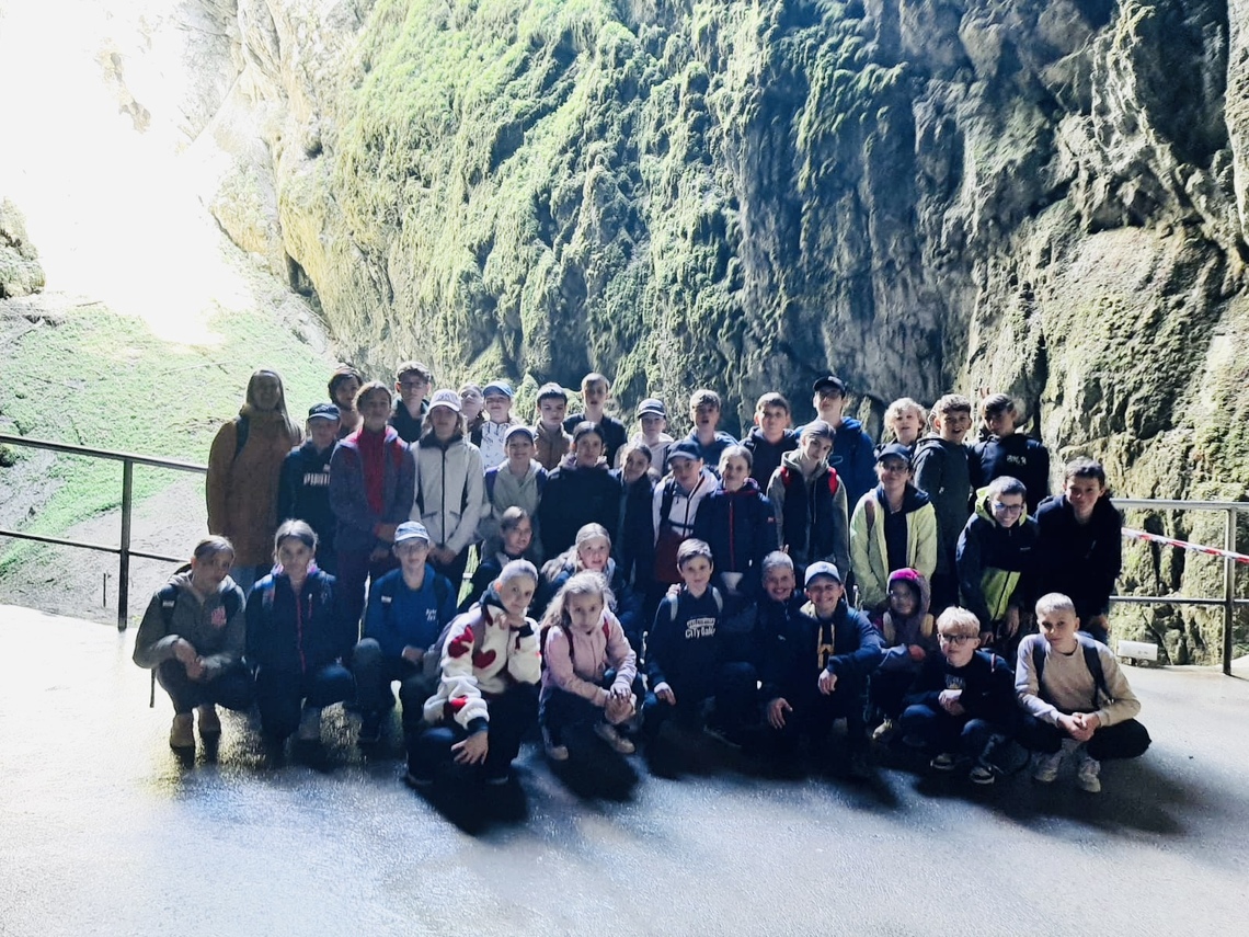 Na místo jsme dorazili kolem deváté hodiny. Autobus jsme vyměnili za vláček, který nás dovezl ke vstupu do Punkevní jeskyně. Teple jsme se oblékli a už nás průvodkyně prováděla jeskyní, kde jsme obdivovali úžasnou krápníkovou výzdobu. Podívali jsme se také na dno 138 metrů hluboké propasti Macocha. Pobavila nás jízda na motorových loďkách doprovázená vtipným komentářem průvodce.