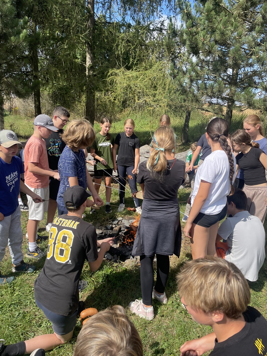 Veronika Mašlárová (7. A) – Výlet se mi moc líbil. Bylo úžasné vidět Anetu, jak na koni skáče přes překážky. Líbilo se mi, když jsme se na koních vozili a odváděli je zpátky do ohrady. Opékání špekáčků bylo také super.