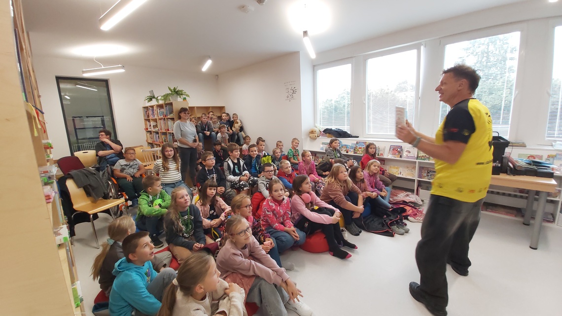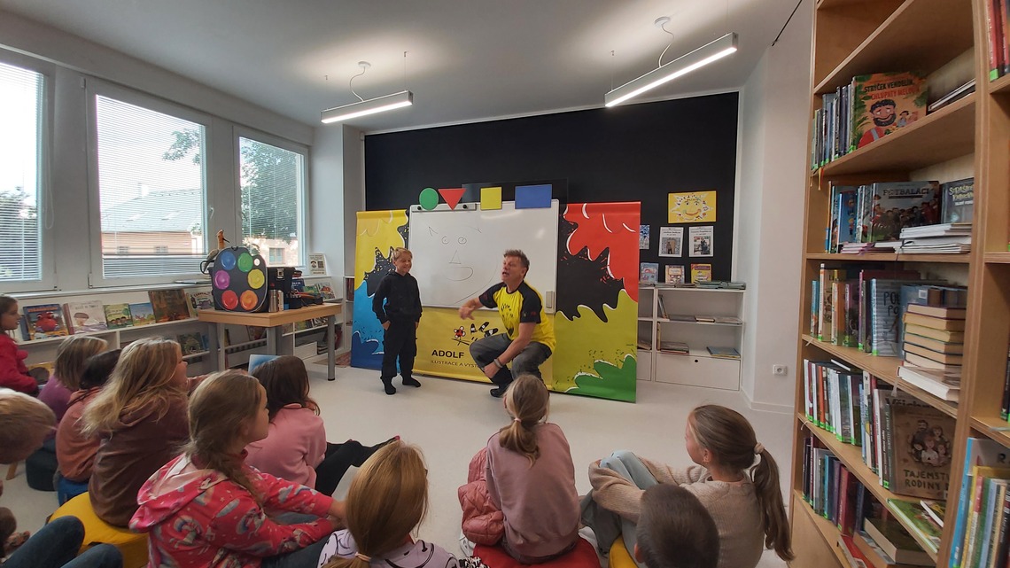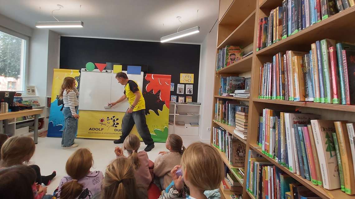 Minulý týden se v místní knihovně uskutečnila zajímavá a velmi zábavná beseda s malířem a ilustrátorem Adolfem Dudkem, který je známý svým originálním a humorným přístupem k výtvarné tvorbě. Dětem ukázal, že ilustrování není žádná věda – stačí umět nakreslit čtyři základní tvary: kruh, čtverec, trojúhelník a obdélník. Z těchto jednoduchých tvarů pak během chvíle vznikaly nejrůznější postavičky, zvířata i celé obrázky.