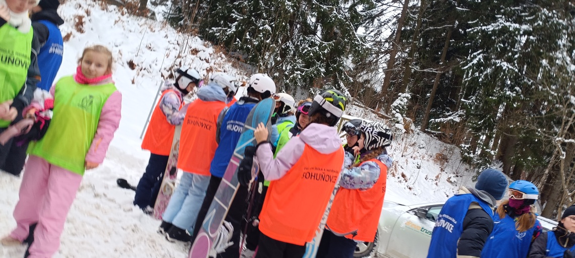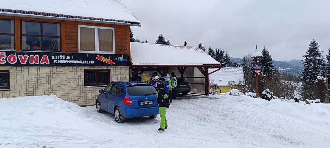 Tak už jsme se dočkali – jsme na lyžáku na Sachovce. Hektický odjezd + hektické ubytování, ale konečně jsme na svahu a začínáme s výcvikem. Zatím na „malé sjezdovce“, ale ve skvělých zimních podmínkách. Seznamujeme se s průběhem dne, s místní kuchyní a také více mezi sebou. Zítra máme slíbený už vlek a někteří se snad podívají na „hlavní svah“. Všechny zdravíme.
