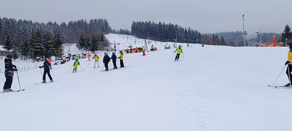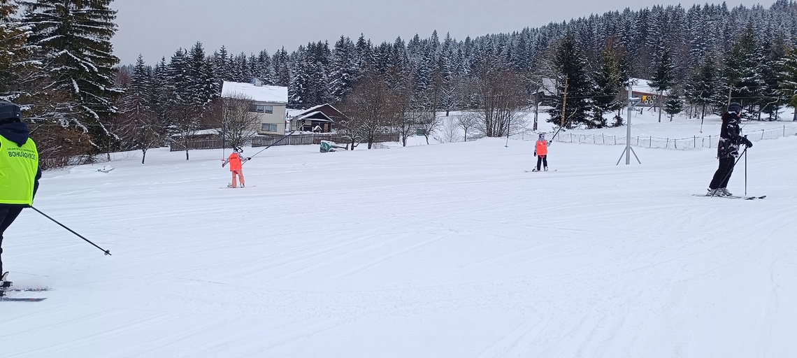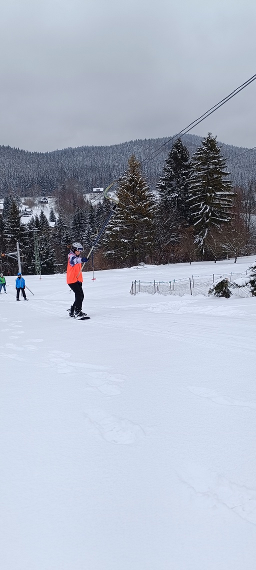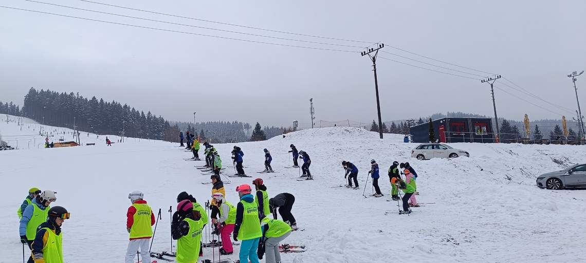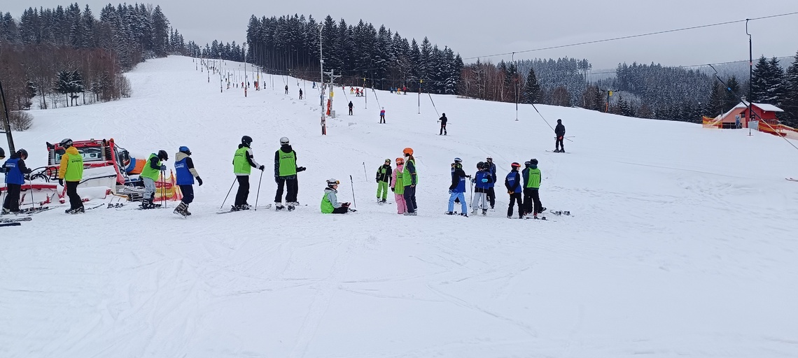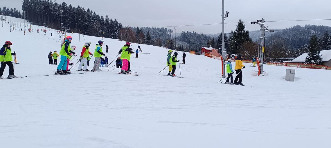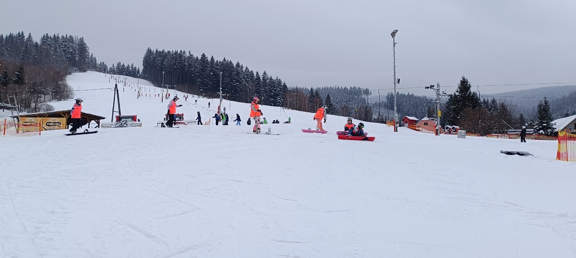 Úterní Sachovka je ve znamení pravého zimního počasí – teplota kolem nuly a odpoledne sněžení. Vstáváme na vydatnou snídani a těšíme se na vleky a další lyžování. Každé družstvo má barevné rozlišení a pod vedením instruktorů se zlepšujeme. Večerním program je ve znamení soutěží mezi družstvy a následné „Stardance“. Večerka ve 22.00 je tak akorát, protože únava se opravdu zvyšuje. Tak zítra ahoj.