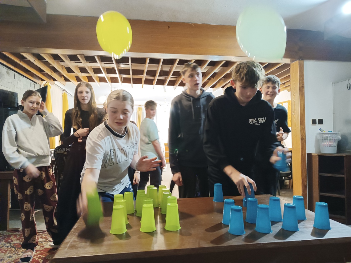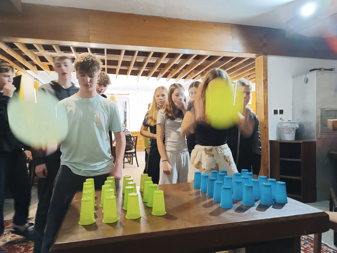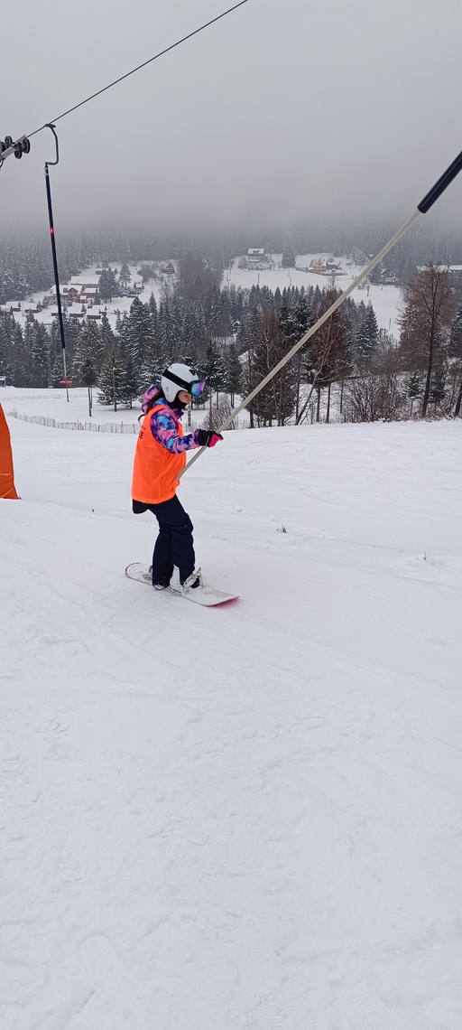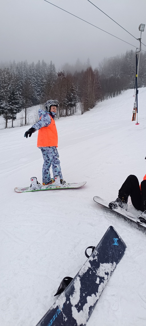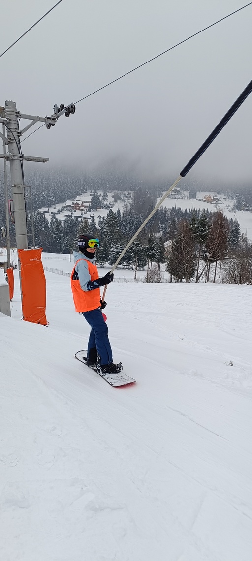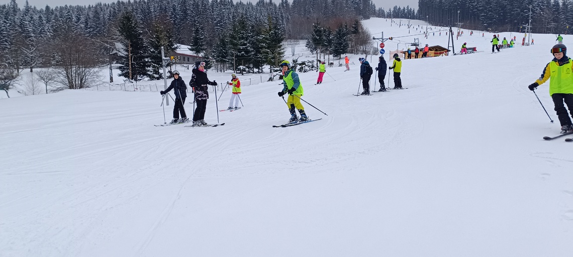 Úterní Sachovka je ve znamení pravého zimního počasí – teplota kolem nuly a odpoledne sněžení. Vstáváme na vydatnou snídani a těšíme se na vleky a další lyžování. Každé družstvo má barevné rozlišení a pod vedením instruktorů se zlepšujeme. Večerním program je ve znamení soutěží mezi družstvy a následné „Stardance“. Večerka ve 22.00 je tak akorát, protože únava se opravdu zvyšuje. Tak zítra ahoj.